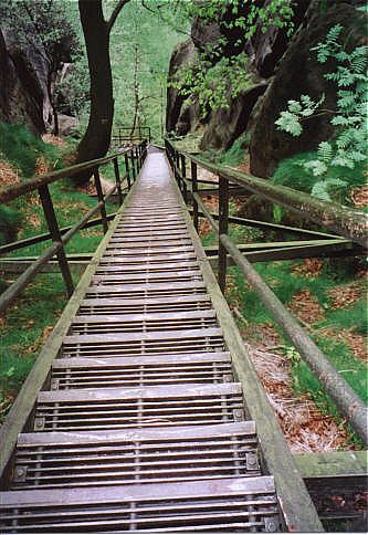 Die Heilige Stiege ist ein sehr stufenreicher Aufgang zum Grat und Plateu zwischen Schrammsteinkette und Winterberg. In Ihrer Nähe befinden sich zahlreiche Klettergipfel mit allen Schwierigkeitsgraden. Einer der Imposantesten ist die Flohspitze. Der Alte Weg mit ausgiebiger Unterstützung (VIIa) und ohne Unterstützung (VIIc). Holger Natusch |