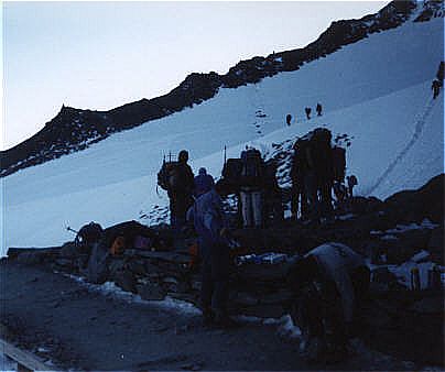 An der Hütte Tete Rus beginnen in der Regel die Aufstiege zur Gouthier-Hütte bzw. gleich bis zum Gipfel.