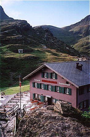 Blick auf die Herberge in Richtung Lauberhorn und Tschuggen