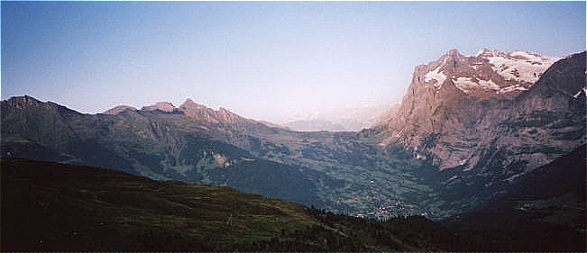 Grindelwald mit Schwarzhorn (2928 m) links und Wetterhorn (3701 m) rechts